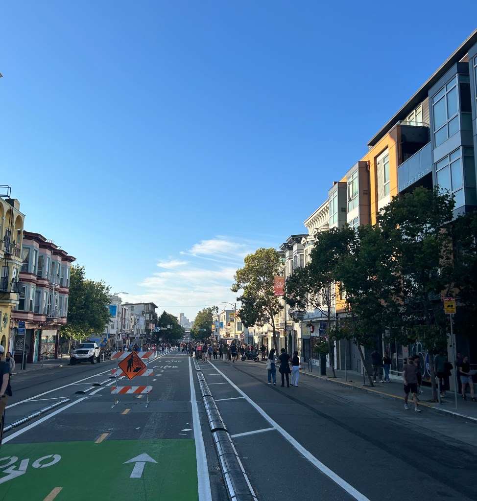 - Valencia St (Mission District): This area has such a warm, inviting ambiance, and some of the most delicious food I’ve had in the city (pupusas, arepas, dumplings, you can have it all!). The street is bustling on weekend evenings, and my friends and I would often grab dinner and stroll into some of the shops (most of which are open later). Highlights include Dog Eared books, a local bookstore with new and used selections, and the many, many thrift shops that line the street.